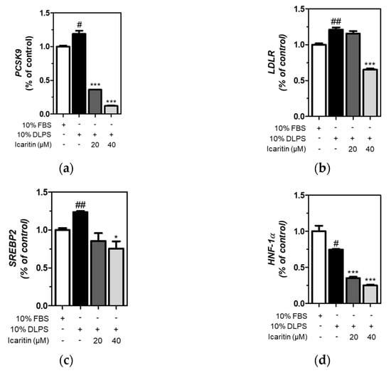 3.5. Icaritin Significantly Attenuated Gene Expression of PCSK9 and LDLR via SREBP2 and HNF-1α Downregulation