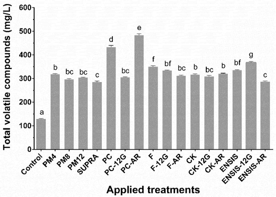 - Patel, S.; Shibamoto, T. Effect of 20 different yeast strains on the production of volatile components in Symphony wine. J. Food Compost. Anal. 2003, 16, 469–476. [Google Scholar] [CrossRef]