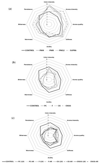 - Francis, I.L.; Newton, J.L. Determining wine aroma from compositional data. Aust. J. Grape Wine Res. 2005, 11, 114–126. [Google Scholar] [CrossRef]