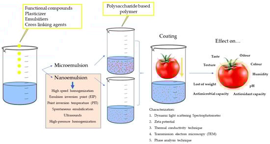 - Hasan, S.M.K.K.; Ferrentino, G.; Scampicchio, M. Nanoemulsion as advanced edible coatings to preserve the quality of fresh-cut fruits and vegetables: A review. Int. J. Food Sci. Technol. 2020, 55, 1–10. [Google Scholar] [CrossRef]