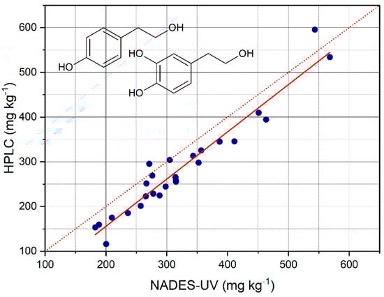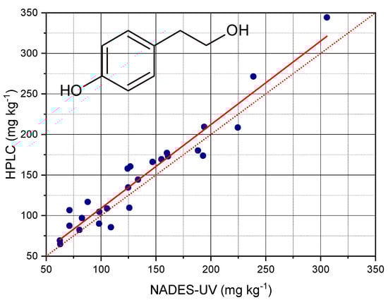 - Paradiso, V.M.; Squeo, G.; Pasqualone, A.; Caponio, F.; Summo, C. An easy and green tool for olive oils labelling according to the contents of hydroxytyrosol and tyrosol derivatives: Extraction with a natural deep eutectic solvent and direct spectrophotometric analysis. Food Chem. 2019, 291, 1–6. [Google Scholar] [CrossRef]