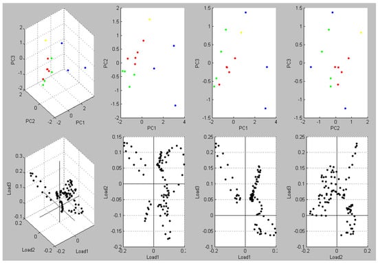 Expected changes were seen in the mass peak spectrum (Figure 1). Mass peaks were dramatically shifted to allow separation of non-related clusters (Figure 1). Principal component analysis (PCA) showed that the clustering was clarified by PC1, PC2, and PC3. Figure 2 summarizes the findings of a two-dimensional cluster analysis. A high resolution to discriminate against non-related clusters was revealed by plotting PC1 and PC2.