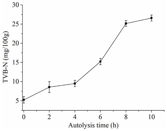 Changes of TVB-N in shrimp head during autolysis.