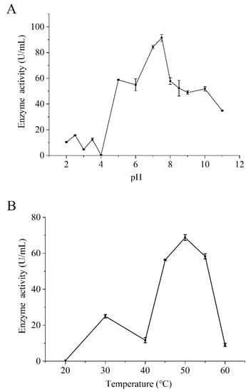 The effects of (A) pH and (B) temperature for the endogenous protease.