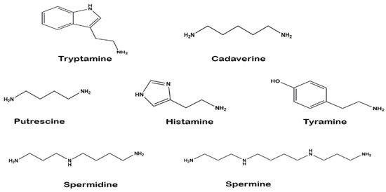 Chemical structures of seven identified biogenic amines.