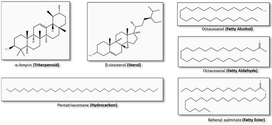 Examples of chemical compounds from plant waxes. Structures: (The LIPID MAPS Lipidomics Gateway, 2020).