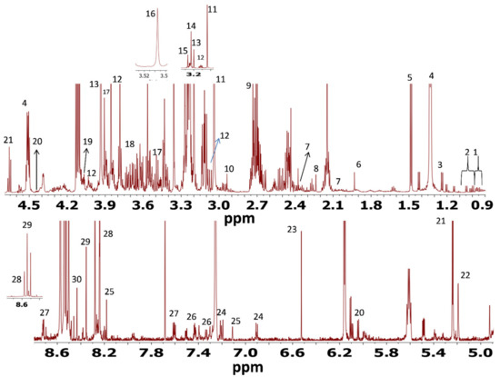 - Viant, M.R. Revealing the metabolome of animal tissues using 1H nuclear magnetic resonance spectroscopy. In Metabolomics; Methods in Molecular Biology; Weckwerth, W., Ed.; Humana Press: Totowa, NJ, USA, 2007; Volume 358, pp. 229–246. [Google Scholar] [CrossRef]