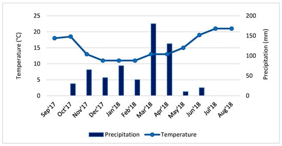 The season’s climatological information, which includes precipitation, radiation, and temperature data, from September 2017 to August 2018, were obtained from Climate Portal [].