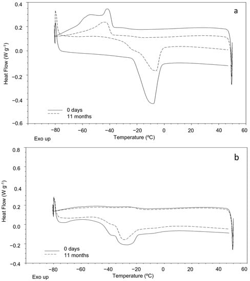 | Sample | Storage Treatment | Oxidation Time | Tc (°C) | ΔHc (J g−1) | Tm (°C) | ΔHm (J g−1) | Tmax (°C) | Weight Loss (%) * |