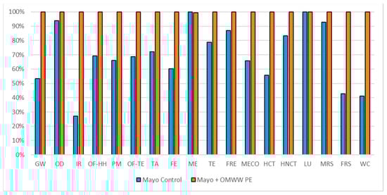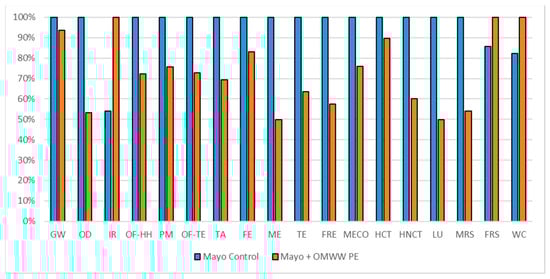 For the traditional formulation (Mayo) used as control, 150 g of soy milk were mixed with 1 g of lemon juice and 199 g of sunflower oil using a blender (1 kW) for 4 min. The final product obtained weighed 350 g. Differently, for the product enriched with polyphenols (Mayo + OMWW PE), 100 g of soy milk were mixed with 1 g of lemon juice, 199 g of sunflower oil, and 50 g of OMWW PE using a blender (1 kW) for 4 min. In this case, the final product obtained weighted 350 g. Input and output data related to this preparation are reported in Table 6.