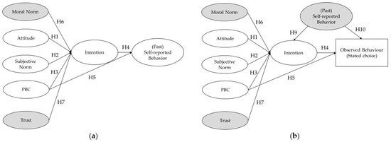 - Armitage, C.J.; Conner, M. Efficacy of the theory of planned behaviour: A meta-analytic review. Br. J. Soc. Psychol. 2001, 40, 471–499. [Google Scholar] [CrossRef]