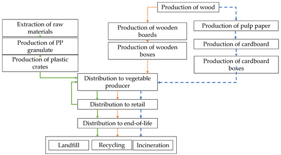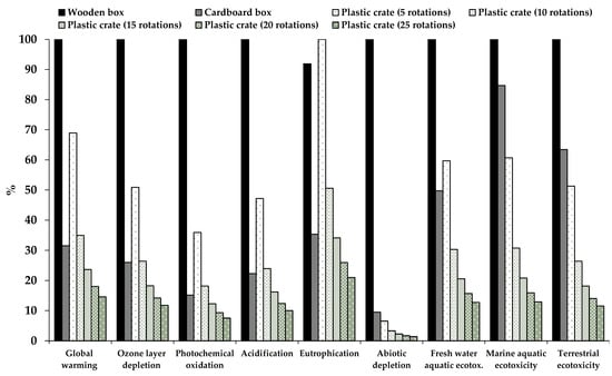 - Del Borghi, A.; Parodi, S.; Moreschi, L.; Gallo, M. Sustainable packaging: An evaluation of crates for food through a life cycle approach. Int. J. Life Cycle Assess. 2021, 26, 753–766. [Google Scholar] [CrossRef]
