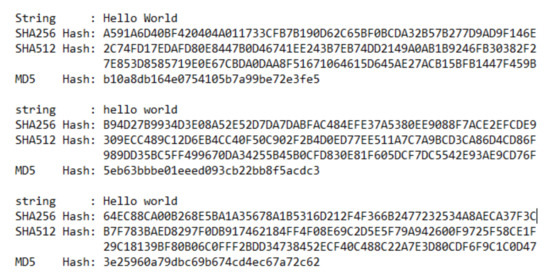 Bitcoin originated from the world’s first blockchain-based application [21]. A blockchain is a distributed database consisting of blocks of information integrated with a cryptographic hash function. A hash function processes the given data using a sequence of complex mathematical transformations, resulting in a fixed-length string of characters called a hash value (Figure 2). The hashing process is designed so that even the tiniest change in the data will result in a completely different hash. In Figure 3, we have a chain of three blocks. The use of hash only is not enough to protect the tampering. Current computers calculate billions of hash per second. We can effectively tamper with the block and recalculate all the hashes of the other blocks. This is where proof of work comes in handy. It slows down the creation of new blocks and makes it very hard to tamper with the block, as tampering with one block will also require proof of work for the current and all following blocks [22].
