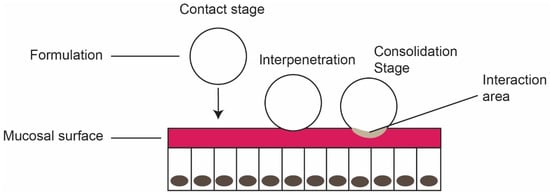 Mucoadhesion is a complex process initiated from the connection between mucoadhesive material (formulation) and mucous membrane by three stages [23,24]: