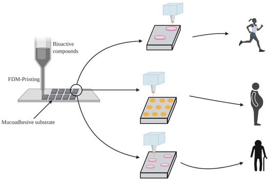Personalized formulation of nutraceuticals for individuals using fused deposition models (created with Biorender.com (accessed on 11 June 2021)).