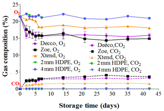 - Almenar, E.; Del-Valle, V.; Hernández-Muñoz, P.; Lagarón, J.M.; Catalá, R.; Gavara, R. Equilibrium modified atmosphere packaging of wild strawberries. J. Sci. Food Agric. 2007, 87, 1931–1939. [Google Scholar] [CrossRef]