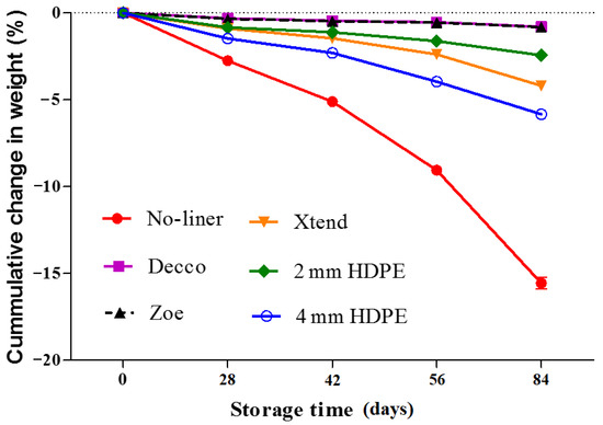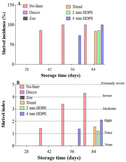 3.2. Weight Loss, Lineal Size Loss, and Shrivel