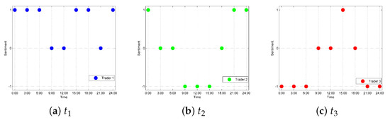| Input: Number of positive reviews and negative reviews collected in the previous period, total period , time interval t, identification numbers of traders , and total number of traders . Output: Prediction results , , and
