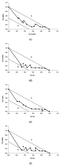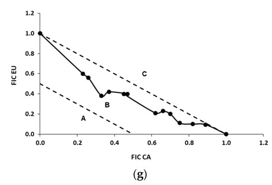 3.2. FICi of Binary Combinations Using Two-Dimensional Checkerboard Method