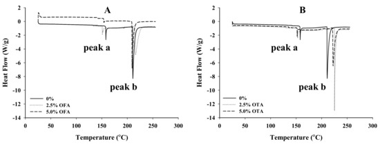 | Property | Control | OFA (w/w) | OTA (%, w/w) | ||