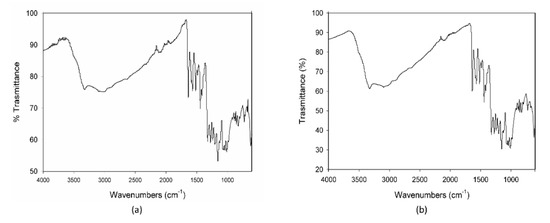 Fourier-transform infrared (FT-IR) spectra were acquired using a Nicolet FT-IR iS10 Spectrometer (Nicolet, Madison, WI, USA) equipped with an attenuated total reflectance (ATR) sampling accessory (Smart iTR with diamond plate) by co-adding 32 scans in the 4000 cm−1–650 cm−1 range with resolution set at 4 cm−1.