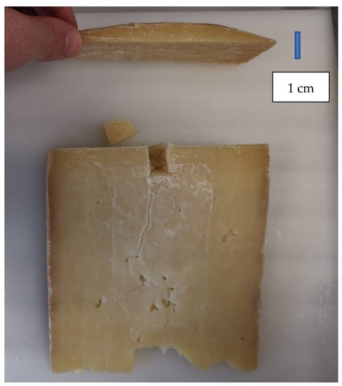 Cheese samples were planned by the PDO Protection Consortium and the Corfilac Consortium. From each, a slice of cheese (0.5 kg) was taken, vacuum-packed, and transferred to a laboratory at the University of Messina. Samples were refrigerated at 5 ± 2 °C. The samples were weighed, and the size of each slice was measured.