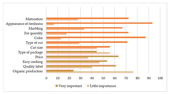 By grouping the quality criteria into only two groups (low and high importance), it was found that other criteria were affected so that the perception of the importance of meat certification is affected by age and gender, and the importance given to meat color is influenced by gender. Consumers up to 30 years of age and women place more importance on certification, and women care more about color than men.