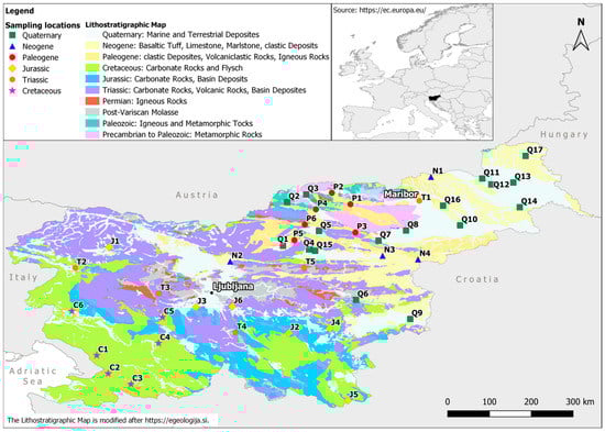 - Bavec, M.; Novak, M.; Poljak, M.; Čertalič, S. Geološka Karta Slovenije 1:1.000.000 = Geological Map of Slovenia 1:1.000.000; Geološki zavod Slovenije: Ljubljana, Slovenia, 2013. [Google Scholar]