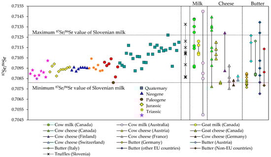 Gregorčič, S.H.; Ogrinc, N.; Frew, R.; Nečemer, M.; Strojnik, L.; Zuliani, T. The Provenance of Slovenian Milk Using 87Sr/86Sr Isotope Ratios. Foods 2021, 10, 1729. https://doi.org/10.3390/foods10081729