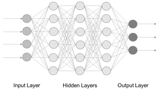 It is a feedforward neural network (FNN) that consists of three main components: the neurons (also called nodes), the connection between these neurons, and the layers. The layers and thereby the neurons are divided into input, hidden, and output [39]. The input neurons receive the raw data. Each of the varying number of hidden layer of neurons takes the sum of the outputs of the preceding layer as an input. This input goes through an activation function, generating output according to the value of the input [39]. DL is not equal to NN, although it is often used in a similar way.