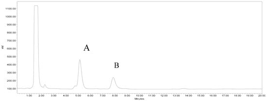 A representative HPLC chromatogram of Joe Parker showing baseline separation of capsaicin (A) and dihydrocapsaicin (B).
