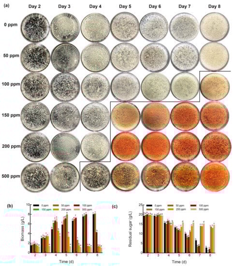 2.3. Determination of Biomass, Residual Sugar, Polysaccharide Content
