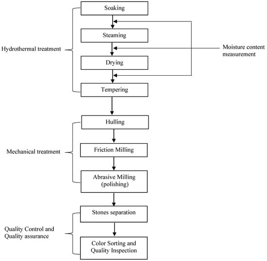 - Gariboldi, F.; Food and Agriculture Organization of the United. Rice Parboiling; Food and Agriculture Organization of the United Nations: Rome, Italy, 1984. [Google Scholar]