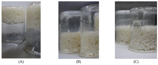 - Sareepuang, K.; Siriamornpun, S.; Wiset, L.; Meeso, N. Effect of soaking temperature on physical, chemical and cooking properties of parboiled fragrant rice. World J. Agric. Sci. 2008, 4, 409–415. [Google Scholar]