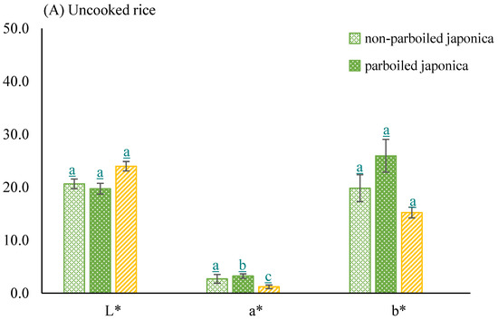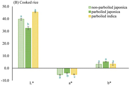2.2. Analyses of the Impact of Parboiling on the Properties of Japonica Rice