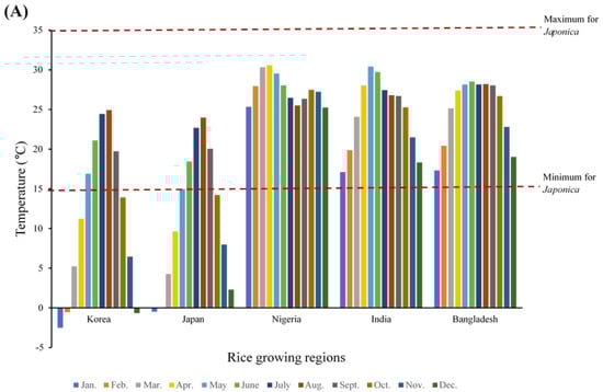 - Dubey, A.; Verma, S.; Goswami, S.; Devedee, A. Effect of Temperature on Different Growth Stages and Physiological Process of Rice crop—A Review. Bull. Environ. Pharmacol. Life Sci. 2018, 7, 129–136. [Google Scholar]