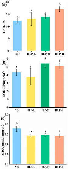 3.5. Effects of HLP on Oxidative Stress Parameters in Mouse Livers