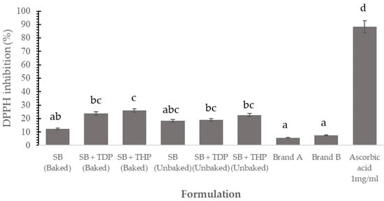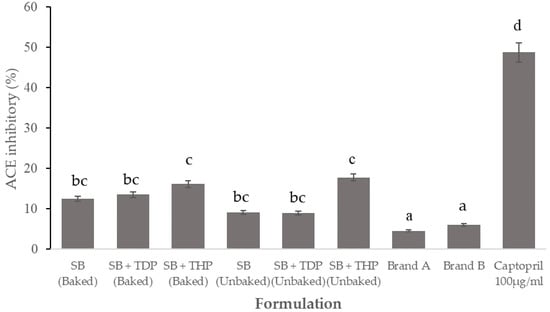 12]. Consequently, this paper aimed to evaluate tilapia fish by-products as a novel food ingredient to analyze different physicochemical and functional properties among SBs enriched with TDP and THP. Meanwhile, considering the importance of cooking method diversification on enriched food products, the effects of different cooking methods, baking and no baking, on the physicochemical and functional properties (including the antioxidant, ACE inhibitory, and antibacterial activities) of the enriched SB production were investigated and compared.