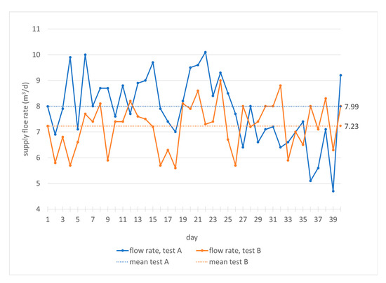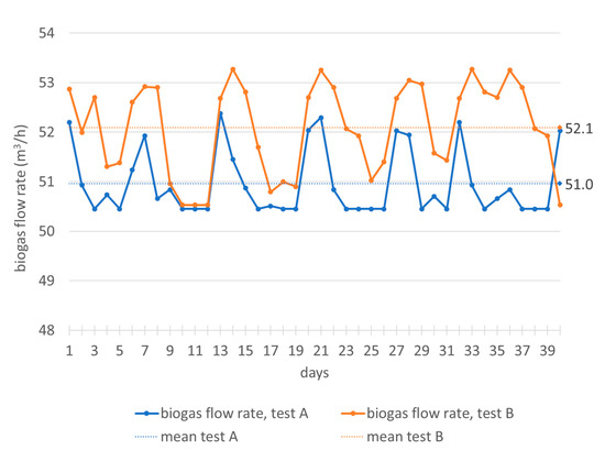 The previously mentioned management software helps the operator in modifying the daily flow rate of the biomass in the plant, basing it on the measurement of the gas volume in the digester’s gasometers and changing the operating time of the screw pump (nominal flow rate 5.0 m3/h). The biogas flow rate was also measured using a Siemens flowmeter mod. SITRANS FC430 is equipped with a SITRANS FCT030 transmitter. The results are represented as a trend over time of the measured parameters of the individual tests conducted.