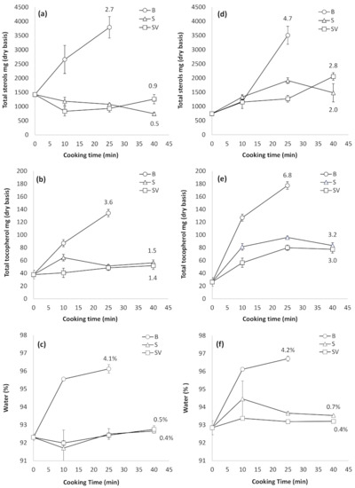 - Kaloustian, J.; Alhanout, K.; Amiot-Carlin, M.J.; Lairon, D.; Portugal, H.; Nicolay, A. Effect of water cooking on free phytosterol levels in beans and vegetables. Food Chem. 2008, 107, 1379–1386. [Google Scholar] [CrossRef]