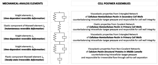 Scheme 2 illustrates the hypothesis relationships between mechanical analog elements in the proposed model, pictured as a tailored Burger’s array, and cell polymer assemblies at cell wall and middle lamella microdomains.