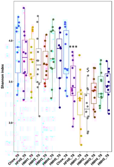 - Le Chatelier, E.; Nielsen, T.; Qin, J.; Prifti, E.; Hildebrand, F.; Falony, G.; Almeida, M.; Arumugam, M.; Batto, J.-M.; Kennedy, S.; et al. Richness of human gut microbiome correlates with metabolic markers. Nature 2013, 500, 541–546. [Google Scholar] [CrossRef]
