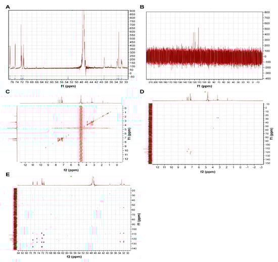 Nuclear magnetic resonance (NMR) spectra of D-tryptophan (Trp). ((A) 1 H NMR, (B) 13 C NMR, (C) 1 H–1 H COSY, (D) HSQC, (E) HMBC).