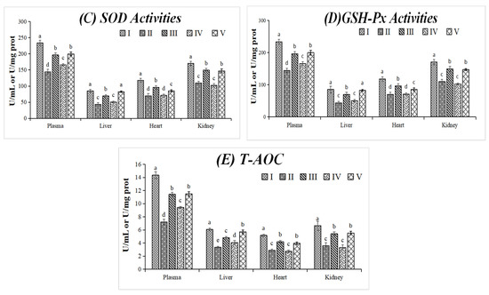 3.3.2. Effects on SOD, GSH-Px, and T-AOC Activities