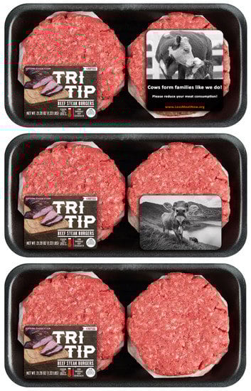 For the majority of history, the place of meat in humans’ diet has remained one of an honored and celebrated food item for both its perceived health benefits and its influence on societies’ cultural, pro-social and economic development []. Not surprisingly this has led us to consider eating meat as natural, normal, necessary, and nice []. It is only recently that meat came under intense scrutiny which increasingly highlighted the detrimental impact of meat production and consumption on animal welfare, human health and the environment [,,,,,,]. However, despite this scientific evidence, meat demand is expected to further increase in the coming years [,,,], putting intense strain on our already exhausted ecosystems. Hence, the necessity to seek strategies to counter this increasing demand and to reduce consumers’ intentions to purchase meat.