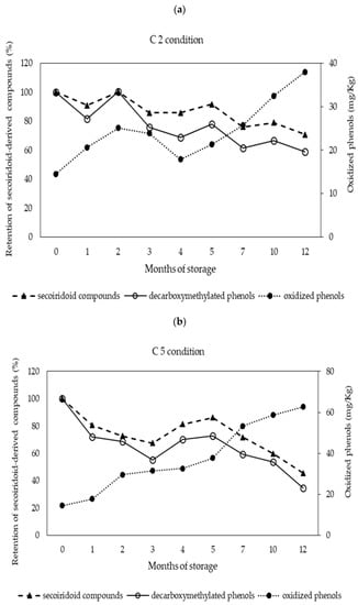 - Castillo-Luna, A.; Criado-Navarro, I.; Ledesma-Escobar, C.; López-Bascón, M.; Priego-Capote, F. The decrease in the health benefits of extra virgin olive oil during storage is conditioned by the initial phenolic profile. Food Chem. 2020, 336, 127730. [Google Scholar] [CrossRef]