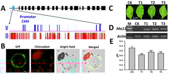 - Ma, B.; Liao, L.; Fang, T.; Peng, Q.; Ogutu, C.; Zhou, H.; Ma, F.; Han, Y. A Ma10 gene encoding P-type ATPase is involved in fruit organic acid accumulation in apple. Plant Biotechnol. J. 2019, 17, 674–686. [Google Scholar] [CrossRef] [PubMed] [Green Version]