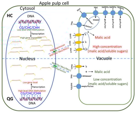 Ma W, Li B, Zheng L, Peng Y, Tian R, Yuan Y, Zhu L, Su J, Ma F, Li M, et al. Combined Profiling of Transcriptome and DNA Methylome Reveal Genes Involved in Accumulation of Soluble Sugars and Organic Acid in Apple Fruits. Foods. 2021; 10(9):2198. https://doi.org/10.3390/foods10092198