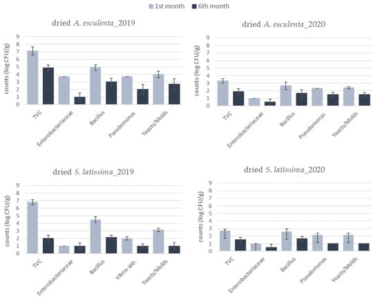 3.3. Microbiological Quality of Dried Products