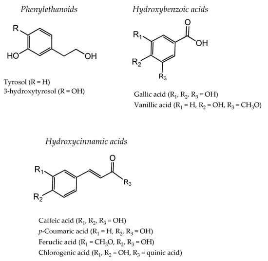 Typical structures of phenolic compounds identified in olive leaves.